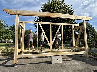 The work at the LBS Murau was completed and the students were proud of their pavilion. With that, the course was completed and everyone was graded with a "participated". For us, the leaders of the course, a new phase began, because what should happen next with this "reading pavilion"? After dismantling and transporting it to Graz, the individual elements were stored in a weather-protected area in the BTZ.
