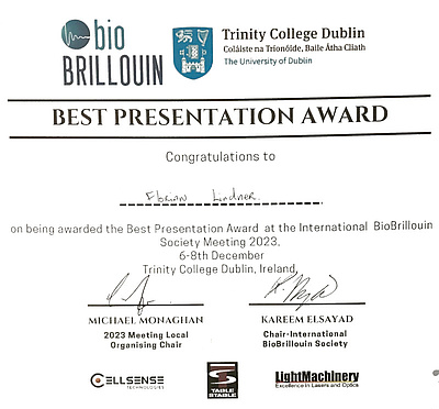 PMWS fellow Florian Lindner received the Best Presentation Award for his contribution at the International BioBrillouin Society meeting 2023 in Dublin. He also received the Best Poster Award at the Exner Lectures 2023 in Vienna. Congratulations, Florian!