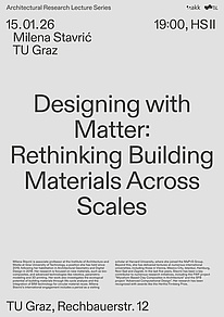 The lecture series “Architectural Research” is an integral part of the Graz Architecture Doctoral School. In the series, international as well as local scholars and architects present their architectural research projects, introducing research concepts, methods and results. In a follow-up workshop, registered participants can exchange ideas and discuss their individual approach with the lecturers.