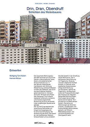 The industrial housing construction of the GDR is characterised by a variety of types and series, as well as recurring structural rhythms. Order, repetition and durability are evident in Berlin's prefabricated buildings. The early IW types mark a phase of transition amidst the network characterised by the aforementioned aspects. Their design is characterised by a limited, realised, constructively sober and modular arrangement, and by the serial logic of prefabricated building elements.