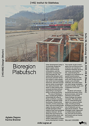 The area of Gösting in Graz, located along Plabutscherstraße 63, reflects these conditions. Located between residential neighbourhoods, infrastructure corridors, former productive sites, and surrounding landscapes, the area is part of a broader bioregion where material flows and ecological systems intersect. At the same time local resources, existing building stock, and neighbourhood potential remain underused in contemporary development models.