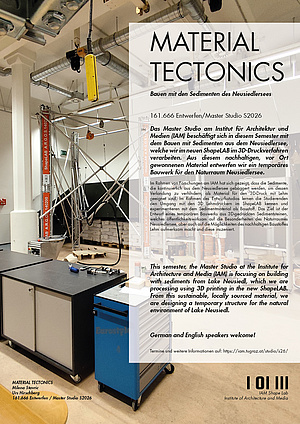 This semester, the Master Studio at the Institute for Architecture and Media (IAM) is focusing on building with sediments from Lake Neusiedl, which we are processing using 3D printing in the new ShapeLAB. From this sustainable, locally sourced material, we are designing a temporary structure for the natural environment of Lake Neusiedl.