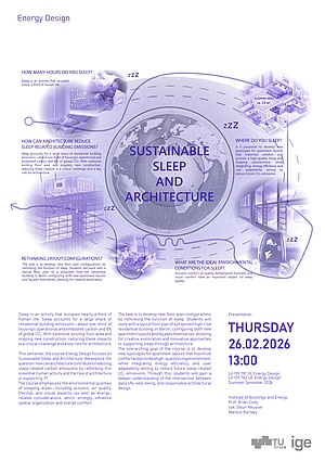 This semester, the course Energy Design focuses on Sustainable Sleep and Architecture. We explore the question: how can architecture contribute to reducing sleep-related carbon emissions by rethinking this essential human activity and the role of architecture in supporting it? The course emphasizes the environmental qualities of sleeping areas—including acoustic, air quality, thermal, and visual aspects—as well as energy-related considerations, which strongly influence spatial organization and overall comfort.