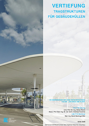 The course is held in cooperation with the IAT design studio and can only be taken in conjunction with design studio 149.666 “Ein Dach am Platz”. Architectural design and structural development are worked on in parallel and coordinated with each other. A roof is designed and structurally engineered for the central regional bus hub at Andreas-Hofer-Platz in Graz.