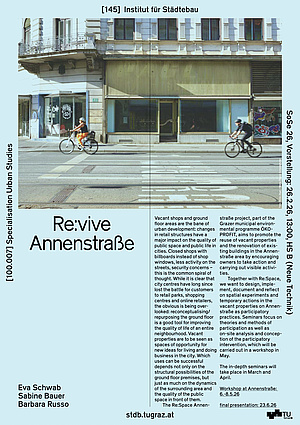 The Re:Space Annenstraße project, part of the Grazer municipal environmental programme ÖKO-PROFIT, aims to promote the reuse of vacant properties and the renovation of existing buildings in the Annenstraße area by encouraging owners to take action and carrying out visible activities.