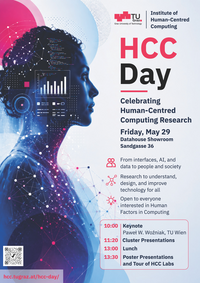 HCC Day welcomes everyone interested in human factors in computing. We particularly welcome students and graduates from TU Graz and universities of applied sciences who are exploring career paths in IT and computing, or looking for thesis and project opportunities. Industry participants curious about current research and methods will also find valuable insights and opportunities for exchange.