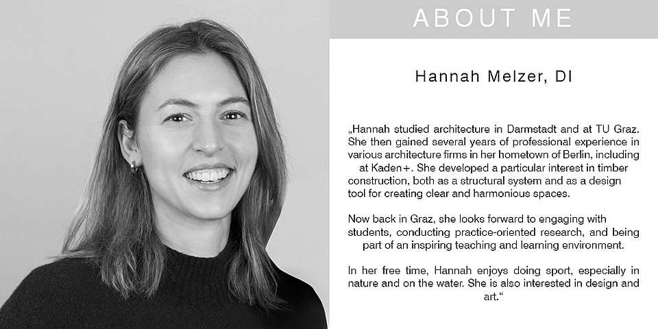 She studied architecture at Graz University of Technology and the ecole d'architecture de Paris-Belleville. She is also active as a design advisor and urban design expert. In her free time, she enjoys hiking in the mountains, both in winter and summer.