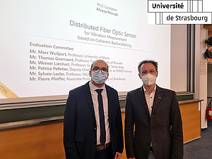 Prof. Werner Lienhart acts as jury president and external examiner at the defending of the PhD Thesis “Distributed Fiber Optic Sensor for Vibration Measurement based on Coherent Backscattering” at the Photonics Group of Universite de Strasbourg. Congratulations to Alireza Morsali for achieving the doctoral degree.