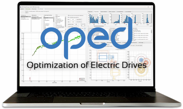 Our software OPED enables a multi-objective design optimization of electric drives, consisting of inverter, electric machine and gearbox. To do so, an evolutionary optimization algorithm from AI methods varies a multitude of design parameters of the electric powertrain to find best possible design solutions. Starting from requirements on system level, the optimization thus automatically generates optimal solutions regarding, e.g., performance, package, cost, energy efficiency and carbon footprint. The result is represented by a Pareto front of optimal solutions from which decision makers can select the most promising one.