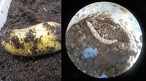 Many farmers and home gardeners are familiar with wireworms as pests of crops. Wireworms aren't actually worms, but rather the larvae of various click beetle species, so they are actually insects. Wireworms live in the soil for several years, feeding on living plant roots. During winter, wireworms burrow into deeper soil layers. When temperatures rise again, driven by hunger, they move to higher soil layers and feed on the delicate seedlings of crops such as lettuce, corn, or sugar beets, often leading directly to the death of the young plants or to infections. Wireworms are also sensitive to dehydration, which is why they burrow in crop tubers like potatoes during the increasingly hot and dry summer months. Therefore, controlling wireworms is especially important in the cultivation of corn, sugar beets, and potatoes.
