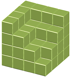 (b) Das abgebildete Objekt besteht aus gleich großen Würfeln und enthält keine Hohlräume. Aus wie vielen Würfeln wurde die Figur gebaut?