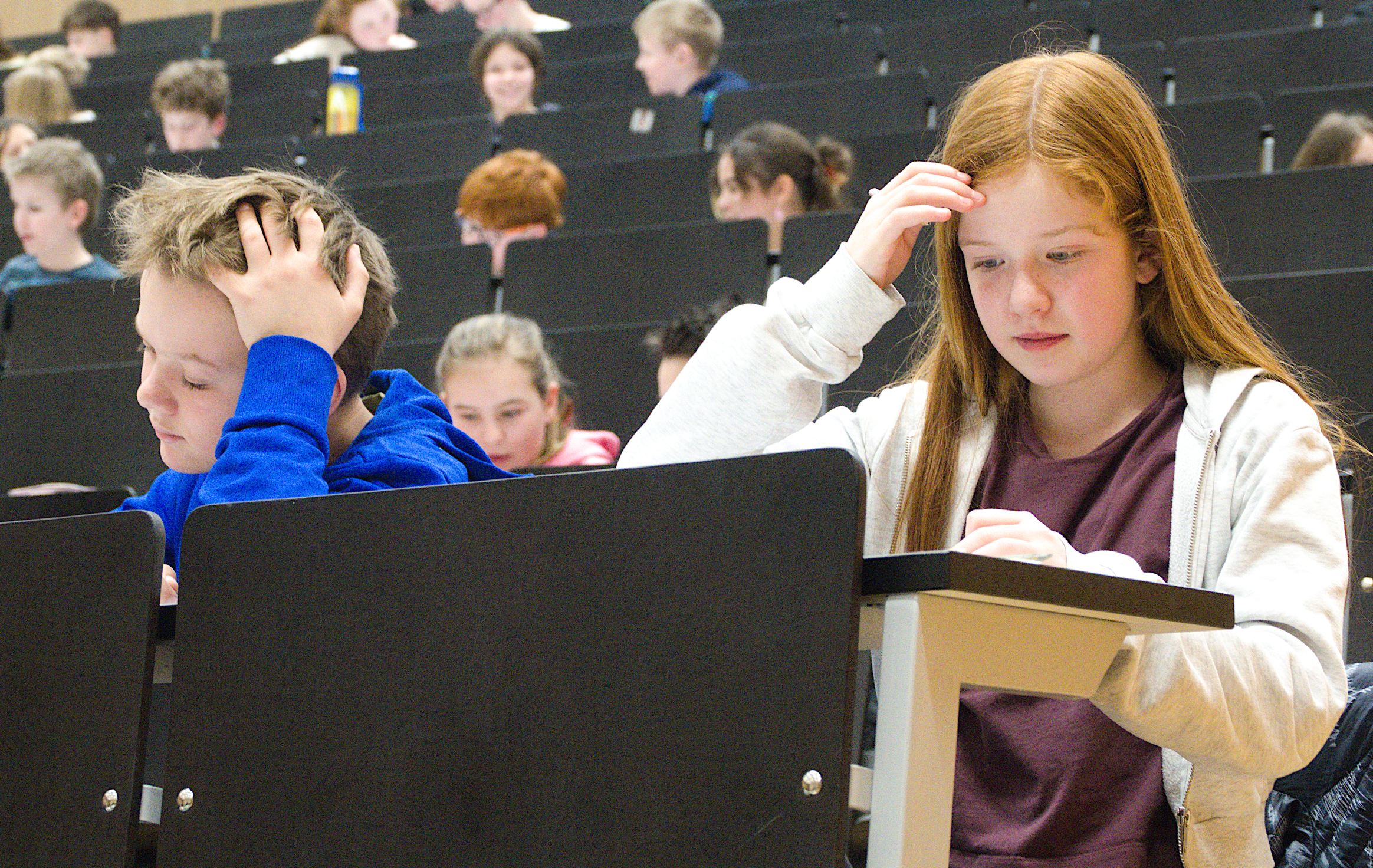 Jeweils ein Mädchen und ein Bub bilden ein Team. Jedes Team bekommt die Aufgaben und darf sich während des Wettbewerbs für das Finden der Lösungen beraten. Am Ende wird ein gemeinsames Lösungsblatt abgegeben.