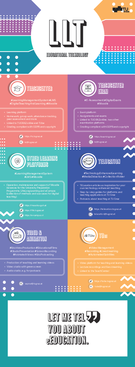 Our folder gives an overview of the services provided by the organisational unit Educational Technology (OU ET). Unless otherwise stated, the services are internal TU Graz services.