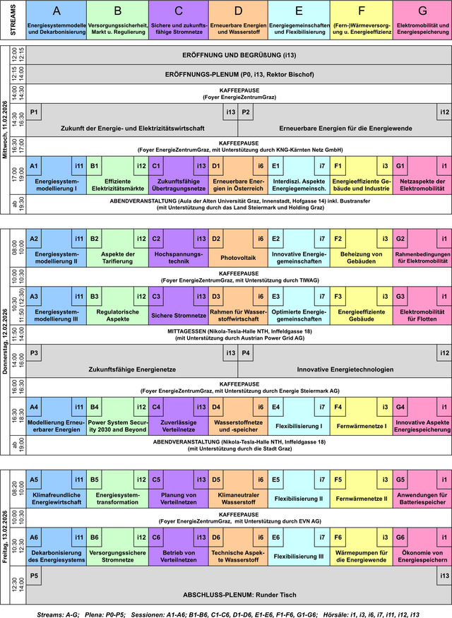 Nachfolgend finden Sie das aktuelle Programm zum 19. Symposium Energieinnovation (Stand: 11.2.2026). Insgesamt wurden vom Reviewing-Komitee 250 Beiträge akzeptiert und in das Programm aufgenommen.