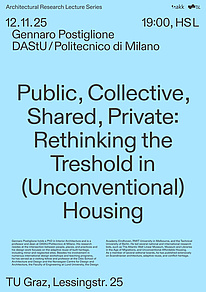 Die Ringvorlesung „Architectural Research“ bildet einen integralen Bestandteil der Grazer Doctoral School Architektur. Lehrende der TU Graz und internationale Gäste stellen aktuelle Projekte der Architekturforschung hinsichtlich ihrer Konzepte, Methoden und Ergebnisse vor. In Workshops diskutieren die Vortragenden mit angemeldeten Teilnehmer*innen der Ringvorlesung über ihre Zugänge zur Architekturforschung und die sich daraus eröffnenden Forschungsfragestellungen.