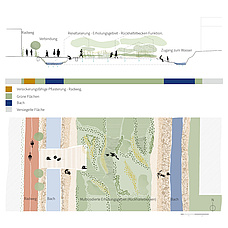 Diese Masterarbeit widmet sich der Frage, wie grün-blaue Infrastruktur (GBI) als integratives Planungsinstrument zur Bewältigung urbaner Herausforderungen beitragen kann. Ziel ist es, Lösungsansätze aufzuzeigen, die sowohl die Regenwasserbewirtschaftung – insbesondere in Gewässernähe – verbessern als auch zur ökologischen und sozialen Aufwertung städtischer Grünräume beitragen. Besonderer Fokus gilt dabei der Rolle der Bevölkerung als aktiver Mitgestalterin des urbanen Wandels. Die methodische Vorgehensweise kombiniert eine kontextbezogene Analyse der Situation entlang des Andritzbachs mit fundierten Recherchen, Expert*innengesprächen und der Auswertung einschlägiger Fallstudien. Auf dieser Basis werden die theoretischen Grundlagen von GBI erläutert und eine praxisorientierte Toolbox untersucht, die als Handlungsleitfaden für die Umsetzung im öffentlichen und privaten Raum dient.