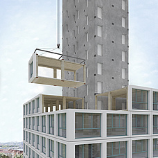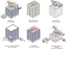 Kreislauffähige Holzskelettmodule. Umnutzbares, reparaturfähiges und wiederverwendbares Modulsystem für den Hochhausbereich