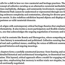 Anstatt den Ort als statisches Monument zu behandeln, wird er in dieser Forschung als dynamisches, vielschichtiges Archiv gerahmt – eines, das die breiteren politischen und kulturellen Verschiebungen in Bosnien und Herzegowina der letzten 150 Jahre reflektiert. Unter Rückgriff auf Architektur, kuratorische Theorie und Memory Studies führt sie das Konzept des collective curating als methodischen Ansatz ein, um mit fragmentierten Erinnerungsstätten umzugehen. Dies bedeutet, konkurrierende Narrative anzuerkennen, Vereinfachungen zu widerstehen und Abwesenheit nicht als Defizit, sondern als kritisches und konstruktives Element historischen Verstehens zu begreifen.