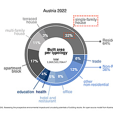 Da der Bausektor für etwa 37 % der globalen CO2-Emissionen verantwortlich ist, versucht Österreich, bis 2050 Klimaneutralität in der Bauwirtschaft zu erreichen. Dennoch bestehen Unsicherheiten hinsichtlich der Wirksamkeit der Strategien zur Erreichung der Klimaziele, was die Notwendigkeit unterstreicht, radikalere Ansätze zur Dekarbonisierung des gebauten Umfelds zu erforschen – insbesondere im Bereich der Einfamilienhäuser. Mit einem Anteil von 32 % an den gesamten bebauten Quadratmetern in Österreich stellen Einfamilienhäuser den am häufigsten errichteten Bautyp im Gebäudebestand des Landes dar.