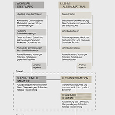 Eine Möglichkeit, diesen Herausforderungen zu begegnen, ist der materialgerechte Einsatz von Lehm als Baustoff. Der Rohstoff ist je nach Ausführung schalldämmend, feuerhemmend und diffusionsoffen. Er überzeugt durch seine lokale Verfügbarkeit, die einfache Verarbeitung und den problemlosen Rückbau. Ziel dieser Arbeit ist es, die Transformation eines konventionellen Ziegelbaus in eine Lehmbauweise anhand eines sich in Planung befindlichen Wohnbauprojekts systematisch zu analysieren. Dazu wird zunächst der aktuelle Wohnbau in der Steiermark hinsichtlich baurechtlicher und architektonischer Aspekte untersucht. Darauf folgt eine umfassende Darstellung der materialtechnischen Eigenschaften, bauphysikalischen Qualitäten sowie normativen Rahmenbedingungen des Baustoffs Lehm.