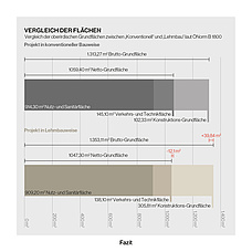 Im Kern der Arbeit wird das konkrete Bauprojekt in eine tragende Lehmbauweise überführt und hinsichtlich Flächen, Baukosten und CO2-Bilanz (Global Warming Potential) quantitativ bewertet. Die Ergebnisse zeigen, dass der Einsatz von Lehmbauweisen unter bestimmten Bedingungen, insbesondere bei niedrigen Gebäudehöhen und kompakten Grundrissen, ohne erhebliche Einschränkungen möglich ist. Daraus können sich ökologische und unter Umständen auch finanzielle Vorteile ergeben. Aktuell bestehen jedoch rechtliche und wirtschaftliche Hemmnisse, die beispielsweise durch fehlende Normierung, erhöhte Schutzanforderungen gegen Feuchtigkeit und fehlendes Fachwissen bedingt sind. Dennoch kann Lehm unter Einhaltung der in Deutschland bereits gültigen Normen ein praktikabler Baustoff für mehrgeschossige Wohnbauten sein kann.