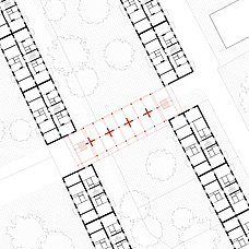 Zwischen den Häusern der Grazer Peripherie entsteht eine neue Typologie – das Zwischenhaus. Diese Arbeit nimmt sich dem Teppich aus Solitären und den daraus resultierenden Zwischenräumen an und sieht sie als Ausgangspunkt architektonischer Intervention. Dort, wo der städtebauliche Zusammenhang fehlt, wird der Zwischenraum neu interpretiert. Es werden Häuser gesetzt, die immer an vier Ecken an Bestandshäuser anschließen, und so den Raum neu fassen und erfassbar machen. Sie schaffen Raum anstatt ihn zu verdrängen. In einer Sammlung von Setzungen im Stadtgebiet von Graz werden unterschiedliche Zwischenräume sichtbar. Vier Orte geben Einblicke in konkrete Situationen und ihre Transformationen.
