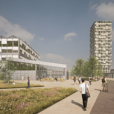 Die Transformation von einem Konsumraum zu einem Ort, der verschiedene Funktionen wie Wohnen, Gastronomie, Sport und Gemeinschaftsaktivitäten integriert, hinterfragt den aktuellen Konsumtrend und zeigt, wie überbleibende Strukturen durch durchdachten Umbau und Entsiegelung einer resilienten Nutzung zugeführt werden können.