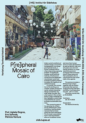 Dieser Kurs konzentriert sich auf die wachsende Stadt Kairo und ihre unterschiedlichen peri-urbanen Bedingungen, wobei geplante und informelle Gebiete innerhalb der Metropole Kairo betrachtet werden. Die fünf ausgewählten Fallstudien aus Kairo und Umgebung ermöglichen es uns, menschliche und übermenschliche Akteure der Stadtentwicklung anzusprechen sowie sozio-ökologische Dynamiken zu identifizieren, zu kartieren und zu artikulieren, um die soziale und ökologische Verflechtung dieser Gebiete und ihr Potenzial, einen kulturellen Wandel für die Agenda der nachhaltigen Städte voranzutreiben, zu verstehen.