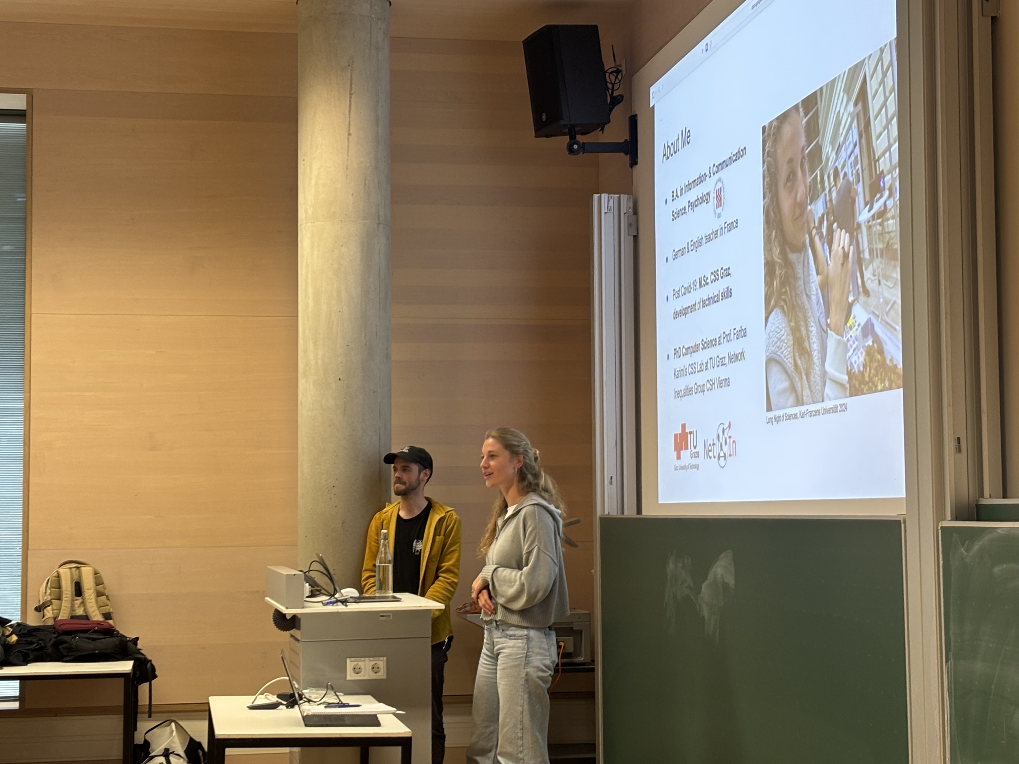 Following a welcome by Matthias Raddant , Fariba Karima introduced the field of Computational Social Systems. Stefan Thalman presented the structure and key elements of the study programme, while Silvia Kober from the University of Graz highlighted the bridge between psychology and computational systems. Paula Nauta, a CSS alumna and current PhD student, shared her academic journey, and student representative Erik Koppenhagen offered insights into student life within the programme.