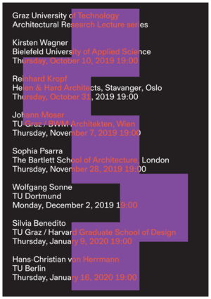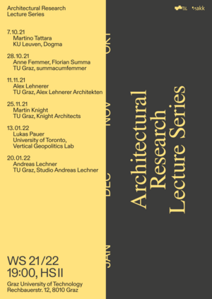 Die Ringvorlesung „Architectural Research“ bildet einen integralen Bestandteil der Grazer Doctoral School Architektur. Lehrende der TU Graz und internationale Gäste stellen aktuelle Projekte der Architekturforschung hinsichtlich ihrer Konzepte, Methoden und Ergebnisse vor.