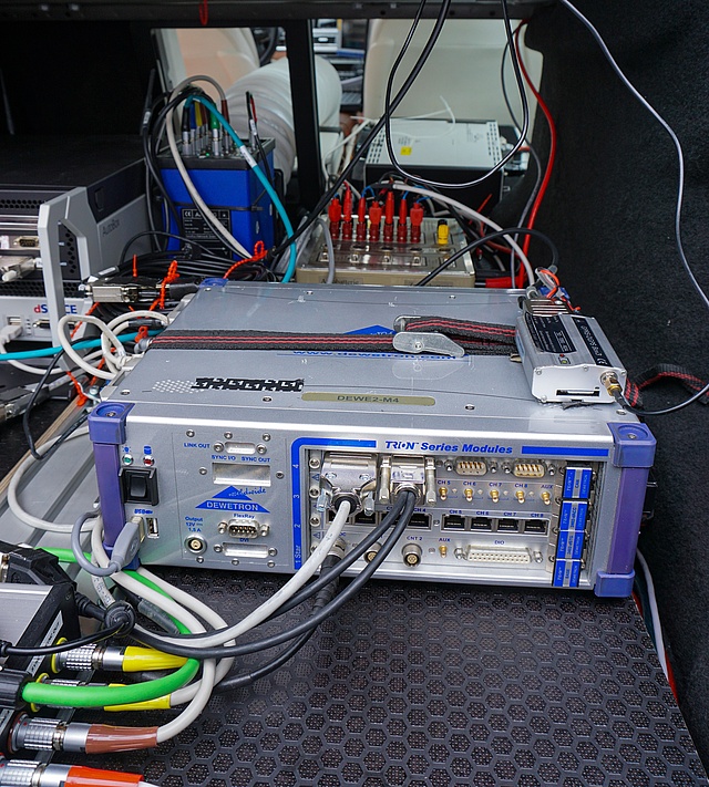 Zur Beurteilung von fahrdynamisch relevanten Größen verfügt das Institut für Fahrzeugtechnik unter anderem über mobile Messtechnik: