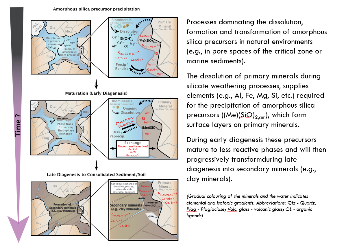 Keywords: Fluid–mineral interactions, stable isotope geochemistry, amorphous silica precursors, silicate weathering, diagenesis, carbon cycle, experimental geochemistry