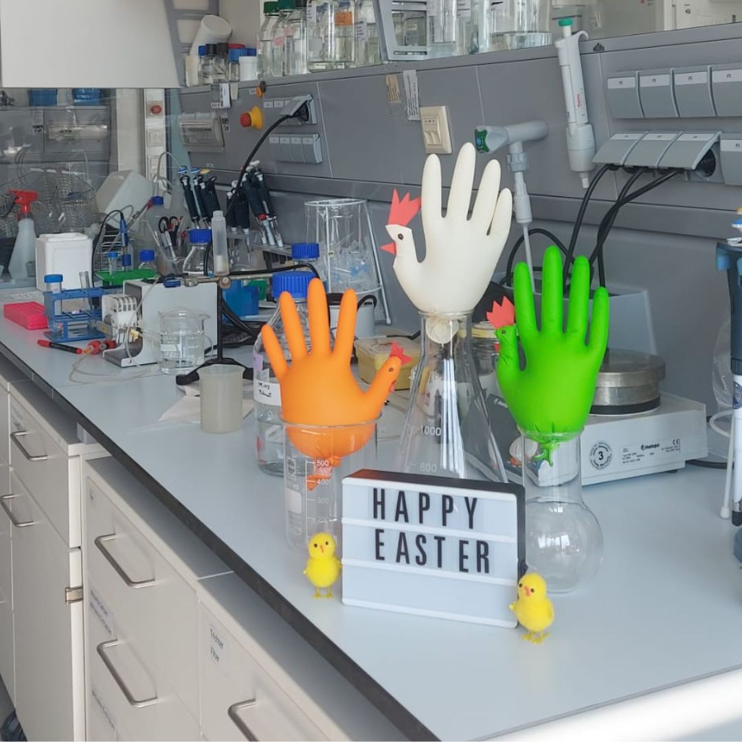 Meanwhile, our lab benches are getting into the Easter spirit: