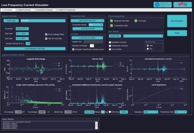 Zur genauen Vorhersage von GICs wird außerdem ein spezielles Simulationstool entwickelt, welches die GICs im Stromnetz auf Basis des elektrischen Feldes und der Netzkonfiguration berechnet. Das elektrische Feld kann entweder aus Magnetfeldmessungen ermittelt oder direkt in das Tool eingegeben werden. Für die Berechnung aus Magnetfeldmessungen kommt die Plane-Wave-Methode in Verbindung mit einem 1D-Erdleitfähigkeitsmodell zum Einsatz.