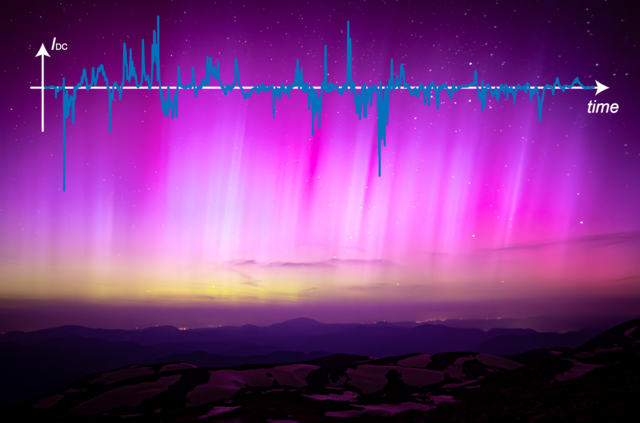 Abbildung 4: Polarlichter über Österreich während Muttertagssturm 2024 mit GIC-Kurvenverlauf an einer Messstation