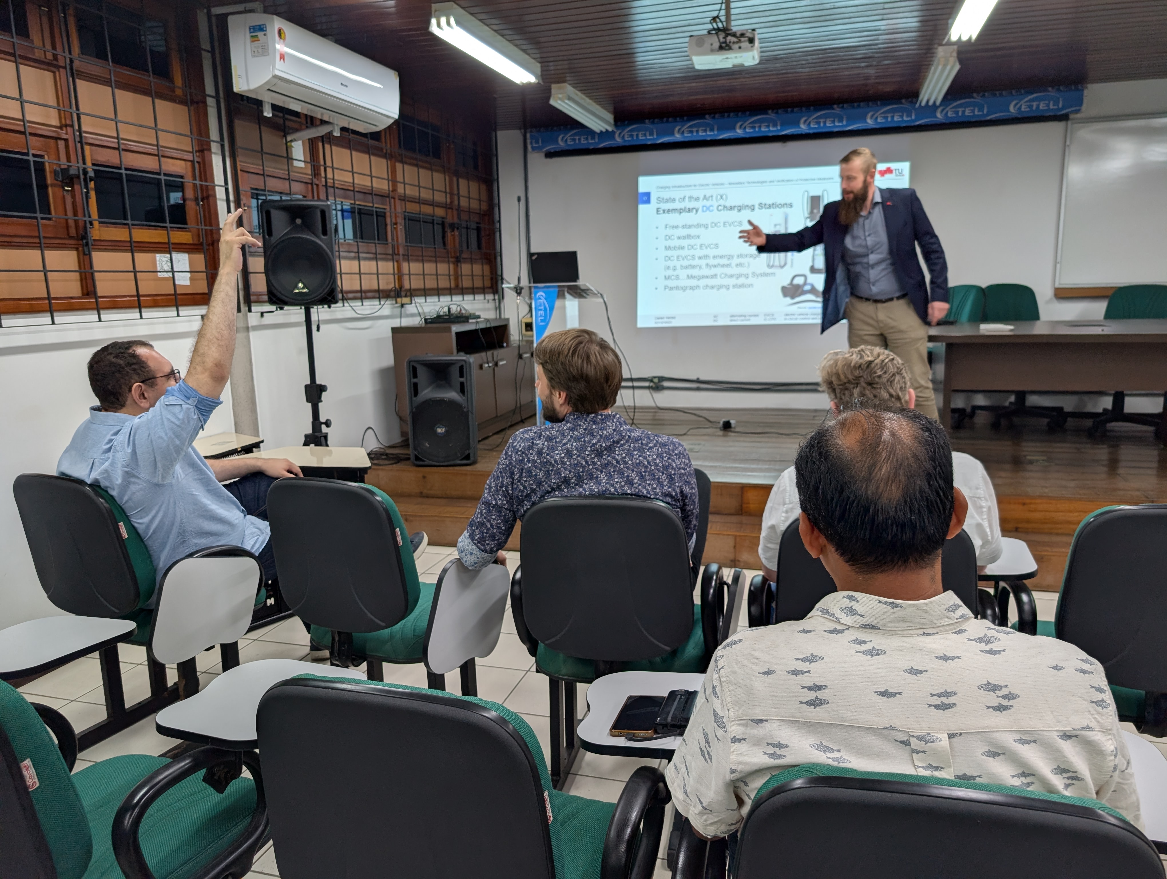 Im Anschluss an den e-controls Workshop in Manaus bot sich die Möglichkeit eines wissenschaftlichen Austauschs am 05.12.2025 an der Universidade Federal do Rio de Janeiro (UFRJ) in Brasilien. Dabei wurden im Zuge von Präsentationen unterschiedliche aktuelle Forschungsthemen und mögliche künftige Kooperationen diskutiert. Im Fokus stand das Themenfeld der Elektromobilität und die zugehörige Ladeinfrastruktur für Elektrofahrzeuge welche in Brasilien bisweilen erst mäßig ausgebaut ist. Sehr spannend war aber auch das Kennenlernen der Universitäts- und Laborinfrastruktur mit einem ganz besonderen Highlight: Eine selbst entwickelte Magnetschwebebahn samt Teststrecke am Campus bis TRL 8 welche voraussichtlich kommendes Jahr in Betrieb gehen soll. Vielen Dank an die Kolleg:innen der UFRJ für deren Einsatz rund um unseren Austausch und deren herzliche Gastfreundschaft. Wir freuen uns schon auf zukünftige Kooperationen und eine mögliche Gegeneinladung.