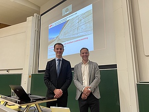 Dipl.-Ing. Christoph Monsberger successfully defended his PhD Thesis with the title “Distributed Fiber Optic Shape Sensing in Structural and Geotechnical Engineering - Principles & Applications”. This thesis will be available soon at the Shaker Verlag. The examiners Prof. Branko Glisic from the Structural Health Monitoring Lab of Princeton University and Prof. Werner Lienhart from TU Graz congratulate Dr. Monsberger on his doctor title.