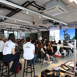 6 Studierendenteams haben ihre Ergebnisse ihres PRODUCT INNOVATION Projekts mit unseren Industriepartnern Astotec, AVL, ÖBB TS, OMV, Palfinger und Payer am 02.06.2022 im Schumpeter Labor für Innovation präsentiert.