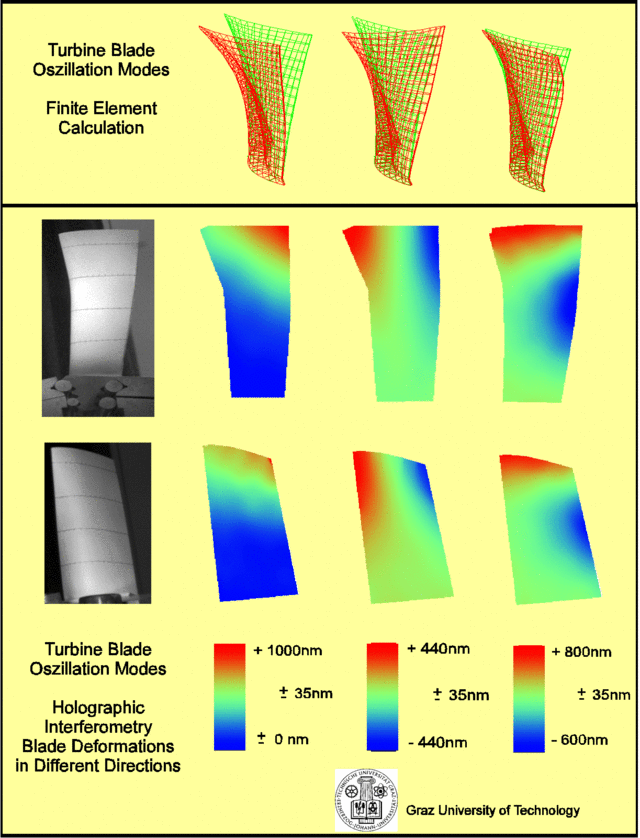 Holographic Interferometry uses the fact that light fields can be stored on photosensitive media when coherent radiation (LASER light) is used. Thus, this technique enables the quantitative comparison between light waves reflected from surfaces before and after stress is applied, as well as the determination of density changes in a flow. The following picture demonstrates the principle of holographic interferometry when used for opaque objects. First a hologram of the object is recorded. To realize this, a small stress is applied; here the receiver of the phone was put on top of the phone and hot water was poured into the cup, then a second hologram is recorded. Both holograms are reconstructed simultaneously. As a result of the interference of both holograms a fringe system is visible. This fringe system can be understood as isolines of surface shift due to the load or due to thermal expansion (isoline level approximately 0.25 micrometer).
