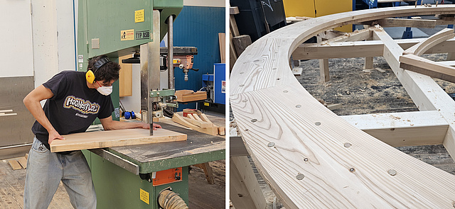 Vorbereiten der Radarme für den Zusammenbau mittels einer Kombination verschiedener zimmermannsmäßiger Verbindungen