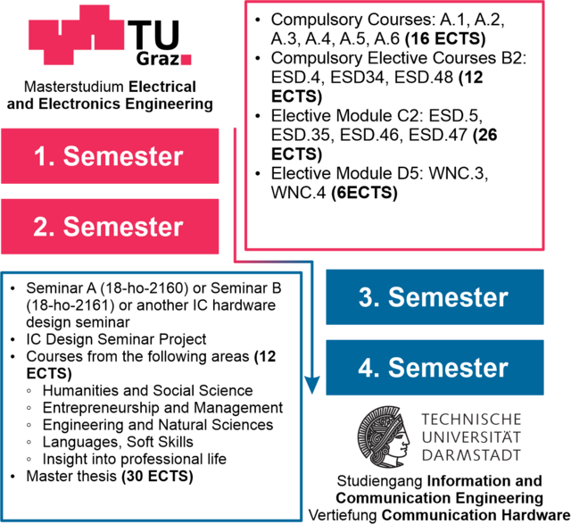 - Spend one academic year at the partner university (either TU Darmstadt or TU Graz)