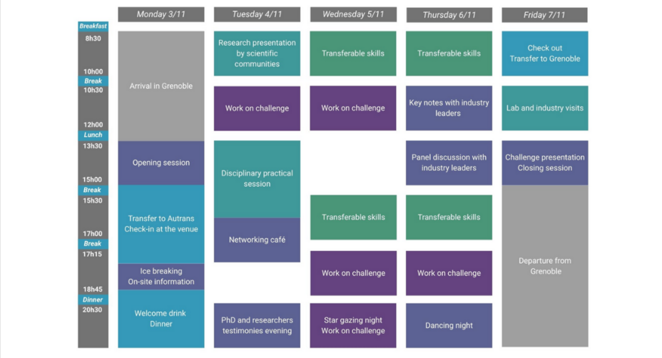 Der Vormittag wurde mit Seminaren zu übertragbaren Fähigkeiten fortgesetzt, gefolgt von Vorträgen und einer Podiumsdiskussion mit führenden Vertretern der Industrie aus Grenoble. Dank eines Zeitfensters für Freizeit konnte ich joggen gehen und die Wellnesseinrichtungen testen (zwei Saunen, ein Whirlpool und ein Pool – natürlich ausschließlich zur akademischen Erholung).