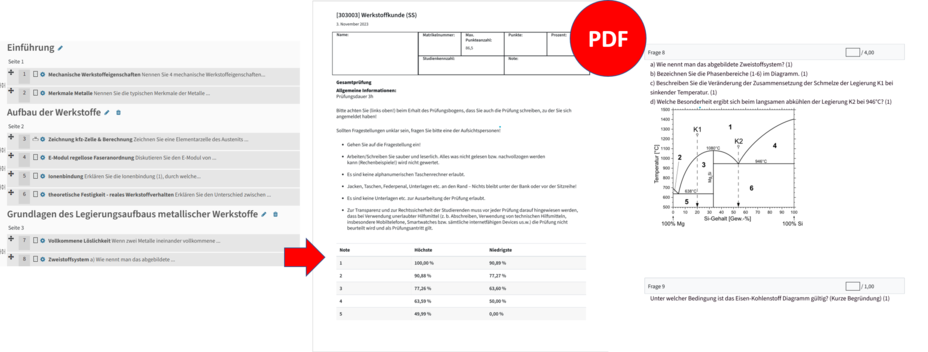 Ist eine Vorlage mit Zufallsfragen und den entsprechenden Exporteinstellungen einmal erstellt, können zukünftige Prüfungen mit einem Klick automatisch erstellt werden – eine große Zeitersparnis in der Prüfungserstellung.