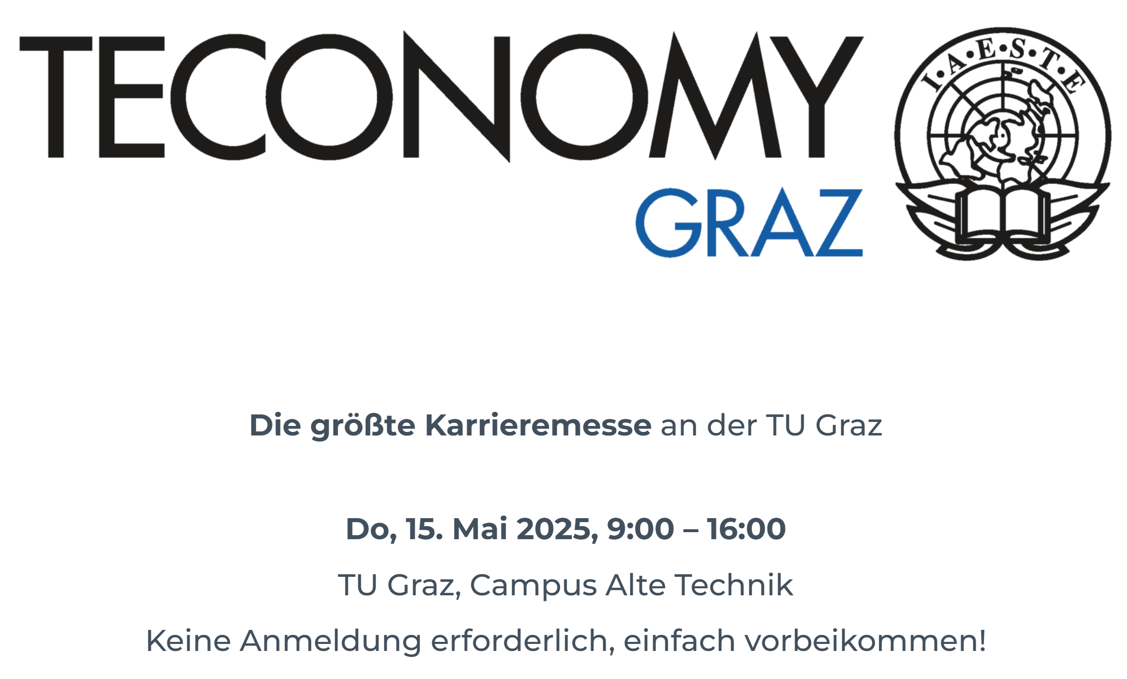 Ob Technik oder Naturwissenschaft – Studierende und Absolvent*innen dieser Fachrichtungen finden hier eine Vielzahl an Karrieremöglichkeiten. Knapp 100 marktführende Top-Unternehmen informieren dich in einer angenehmen und professionellen Atmosphäre über Einstiegsmöglichkeiten in ihr Unternehmen. Nutze deine Chance und besuche die TECONOMY Graz 2025 – die größte Karrieremesse an der TU Graz am 15. Mai 2025. Auf unserer Website erhältst du spannende Einblicke in herausragende Unternehmen, die an der TECONOMY Graz 2024 teilgenommen haben.