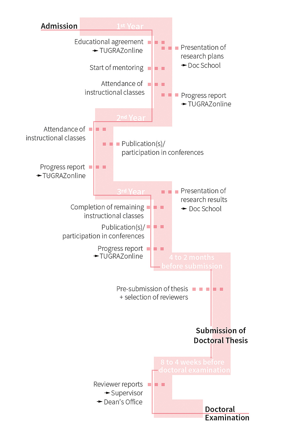 Voraussetzung für die Aufnahme eines Doktoratsstudiums an der TU Graz ist ein einschlägiger Masterabschluss (oder ein gleichwertiger Abschluss) im jeweiligen Fachgebiet an einer Universität oder einer anderen anerkannten postsekundären Bildungseinrichtung.