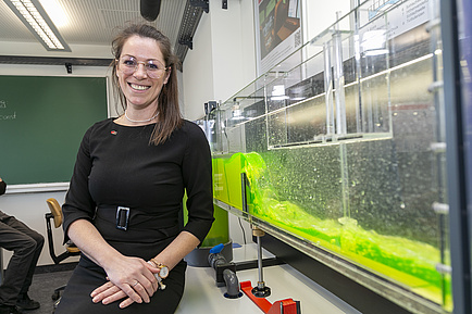 Im neuen "TU Graz Super Science Space" warten 16 Experimentierstationen auf die Kinder, darunter ein mobiler Wasserkreislauf zur Veranschaulichung von Fließverhalten und Strömungslehre von Wasser. Bildquelle: Frankl - TU Graz