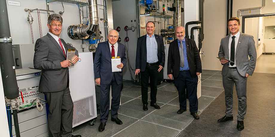Freuen sich über die neue Forschungsinfrastruktur: Harald Kainz (Rektor TU Graz), Helmut List (CEO AVL), Robert Fischer (GF Engineering und Technik Antriebssysteme AVL), Hermann Steffan (Institutsleiter VSI) und Jörg Moser (Leiter BSCG) © Frankl – TU Graz