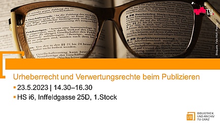 Die Bibliothek der TU Graz lädt zu einem Vortrag von Rechtsanwalt Rainer Beck über Urheberrecht im universitären Kontext ein. Bei dieser Veranstaltung erhalten Sie Informationen zu folgenden Themen: